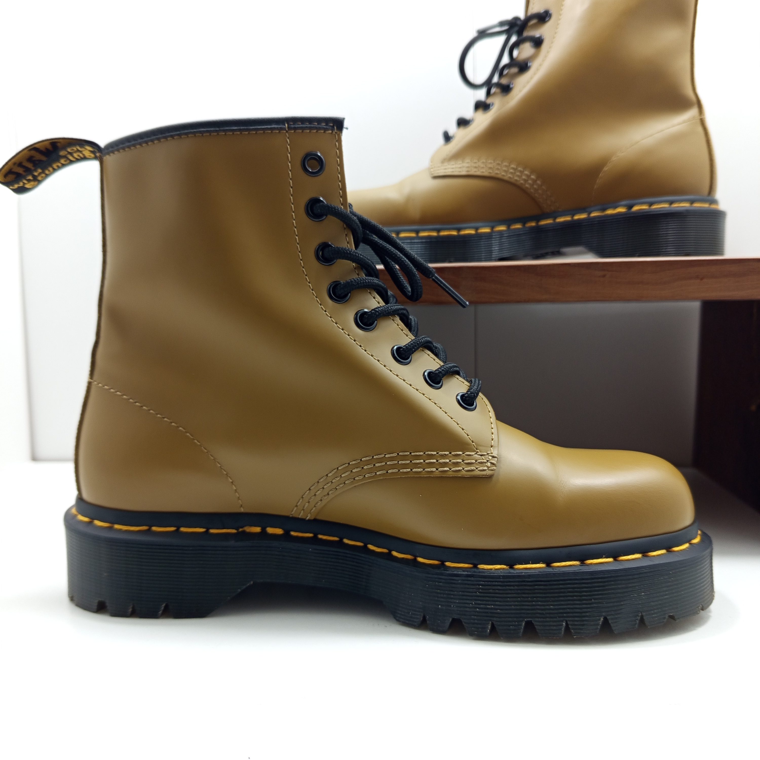 Un classique revisité avec du caractère : ces 1460 se démarquent par leur semelle Bex épaisse qui ajoute du relief et une touche moderne au modèle iconique. Le cuir blanc lisse contraste parfaitement avec la semelle noire.
