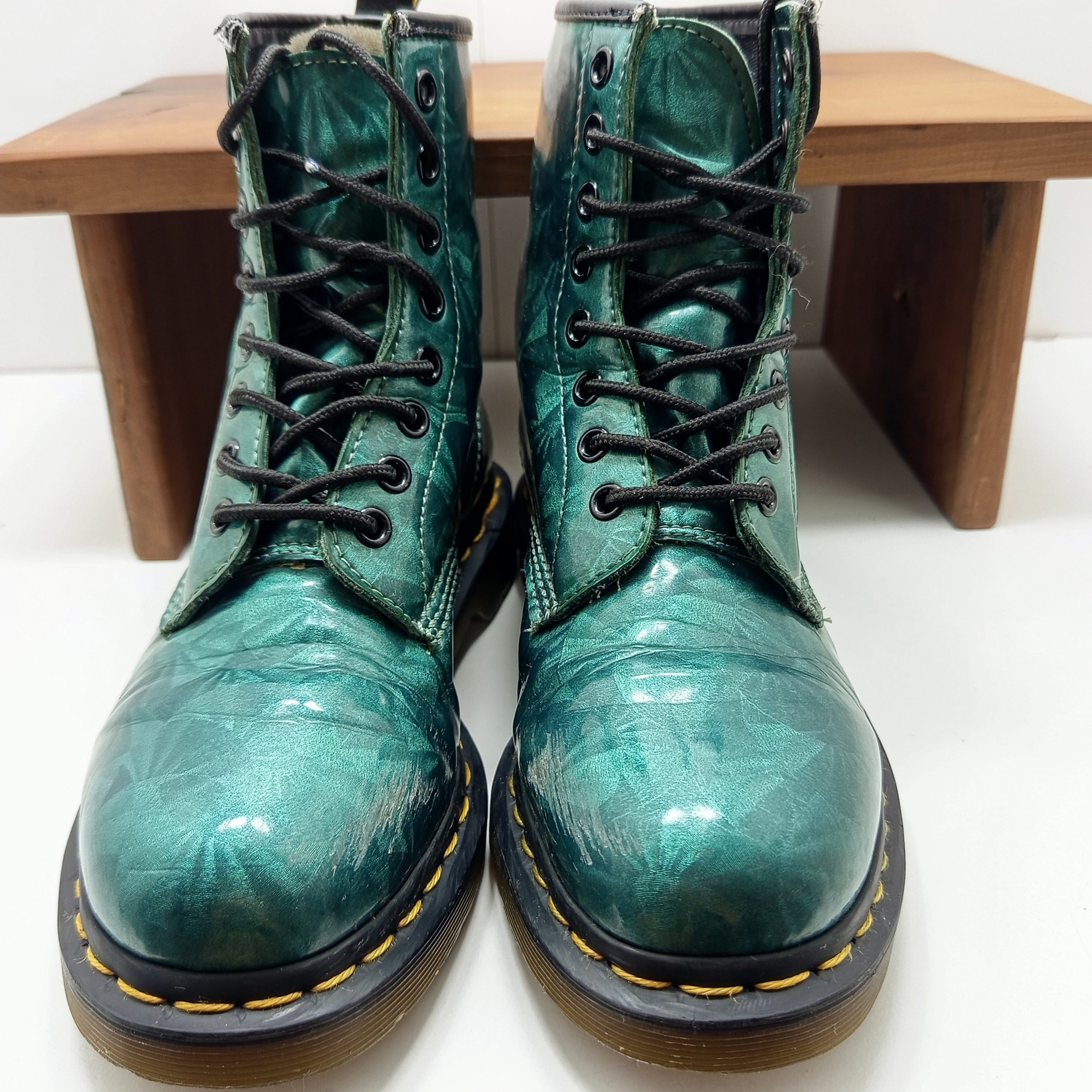 Une superbe paire originale avec des motifs géométriques, et des reflets holographiques.