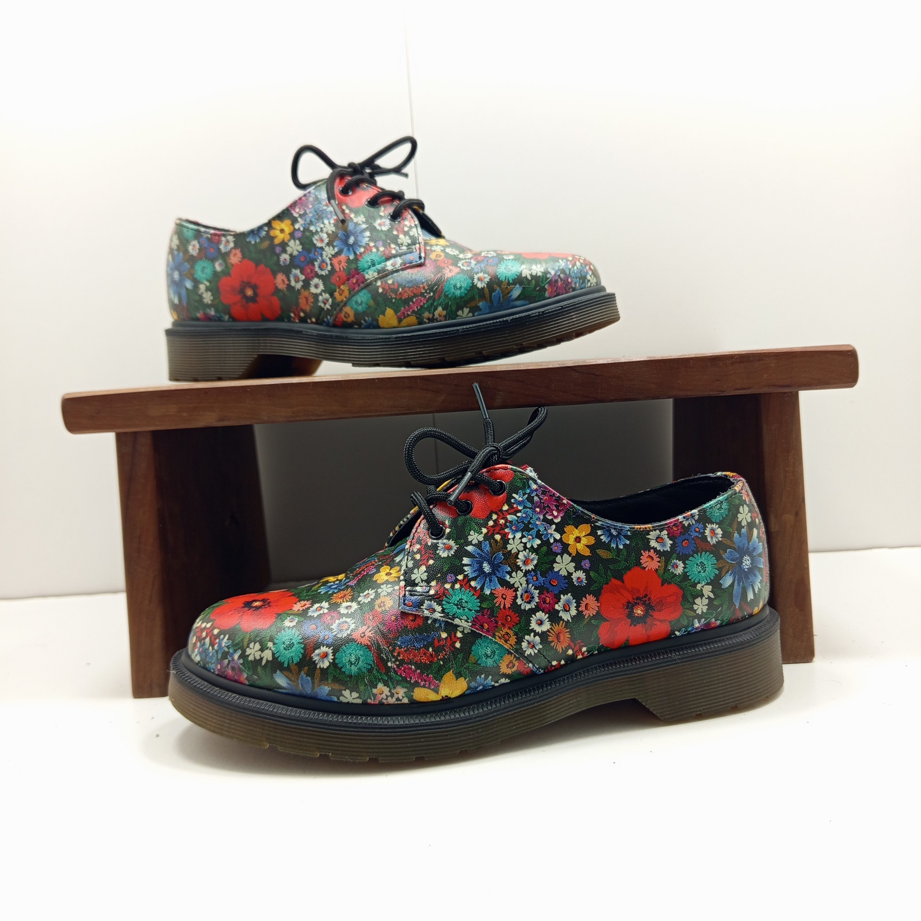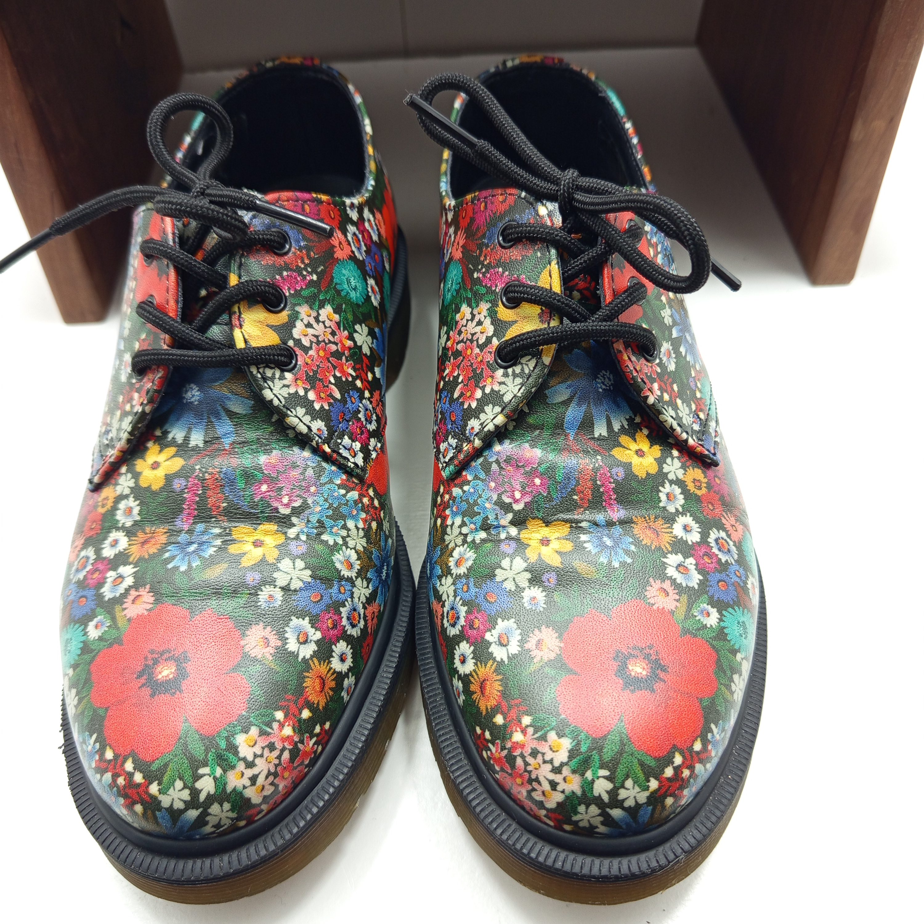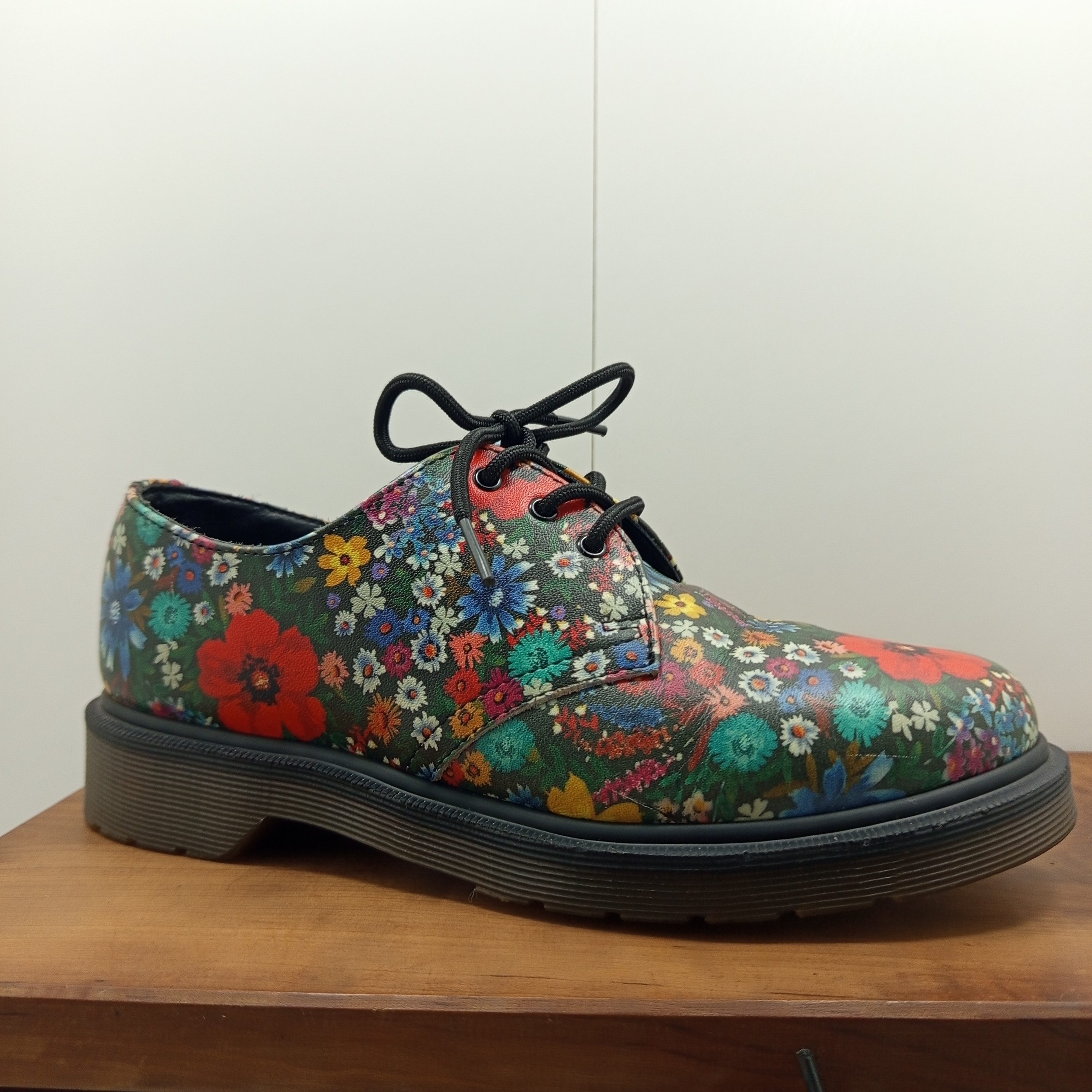 Modèle de Doc Martens en cuir motif floral très coloré.