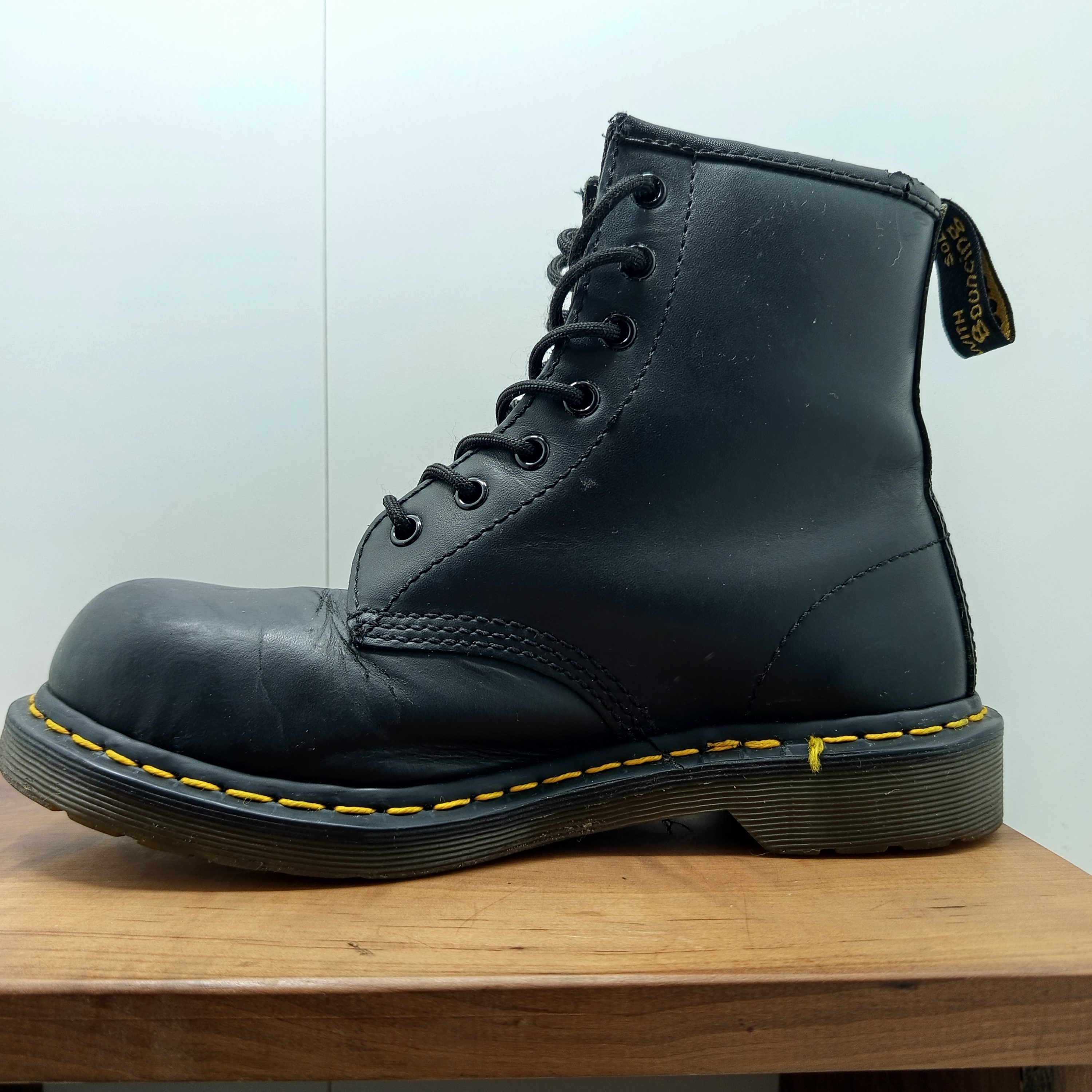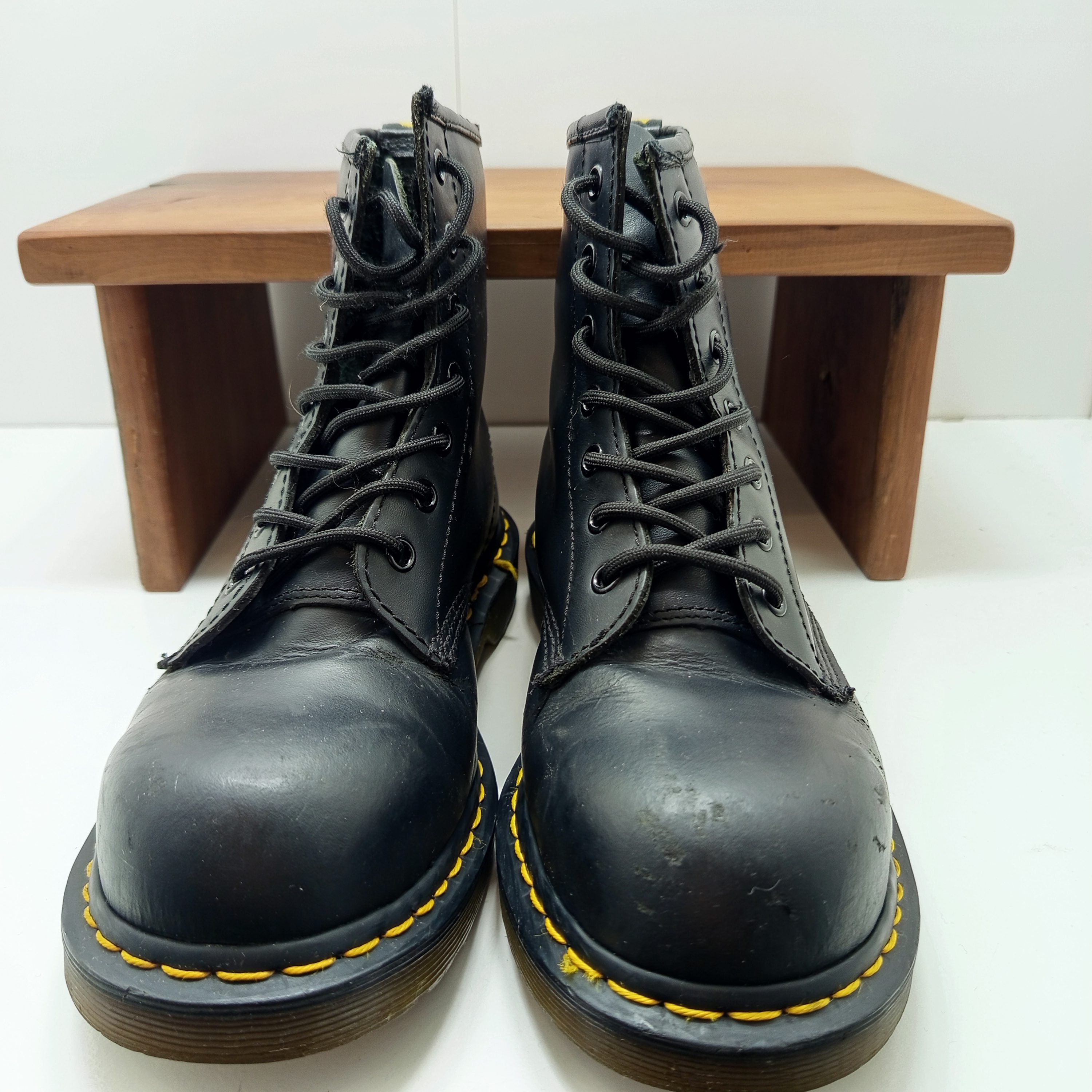 Plusieurs traces d’usures, tour en cuir en haut des chaussures qui craquele.