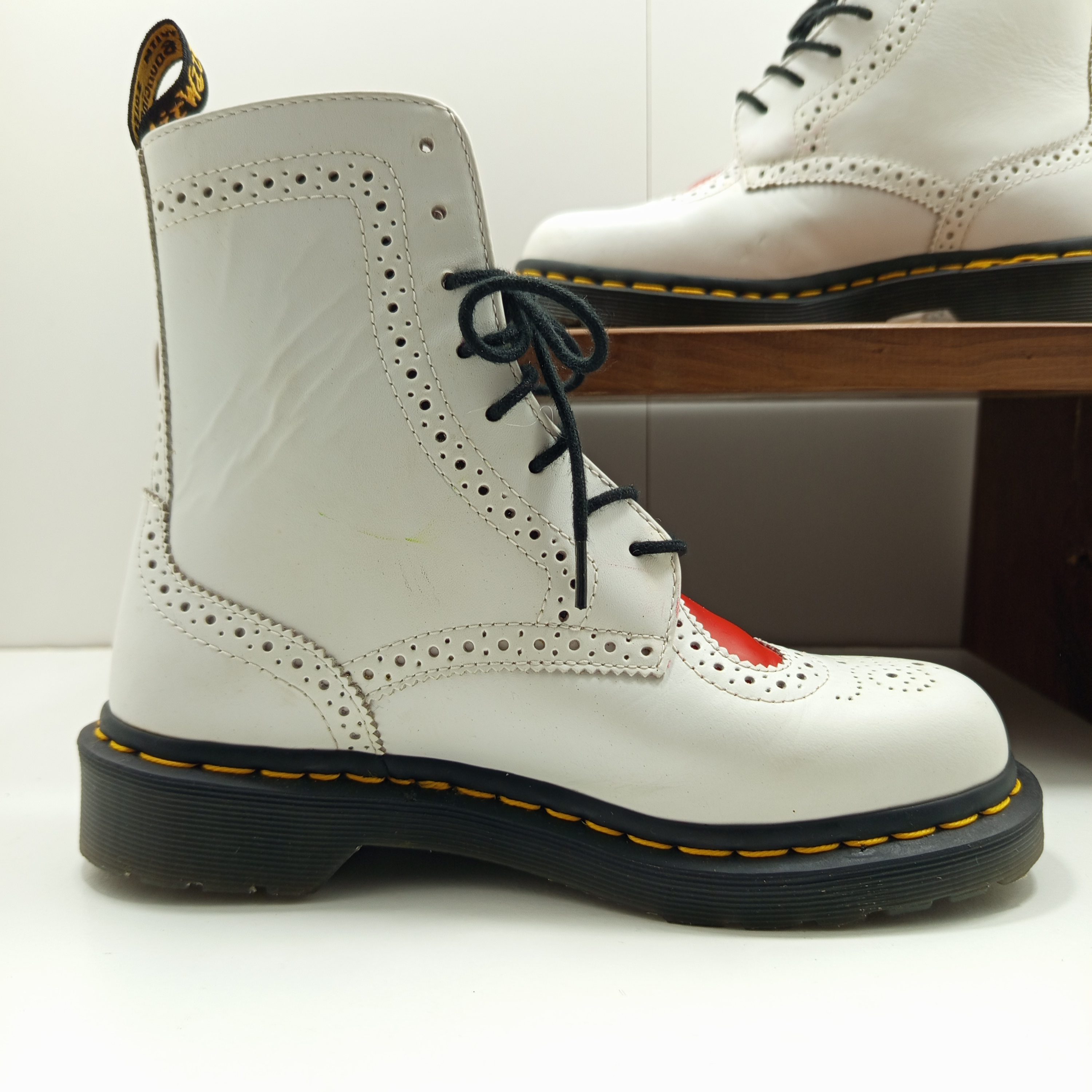 Une jolie paire de doc originale avec un cœur rouge. Féminines et originales.