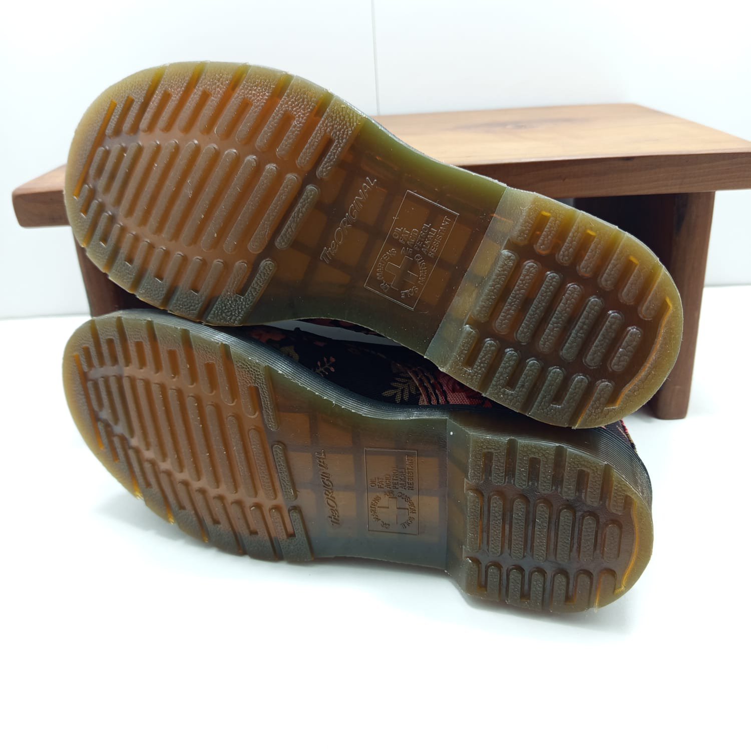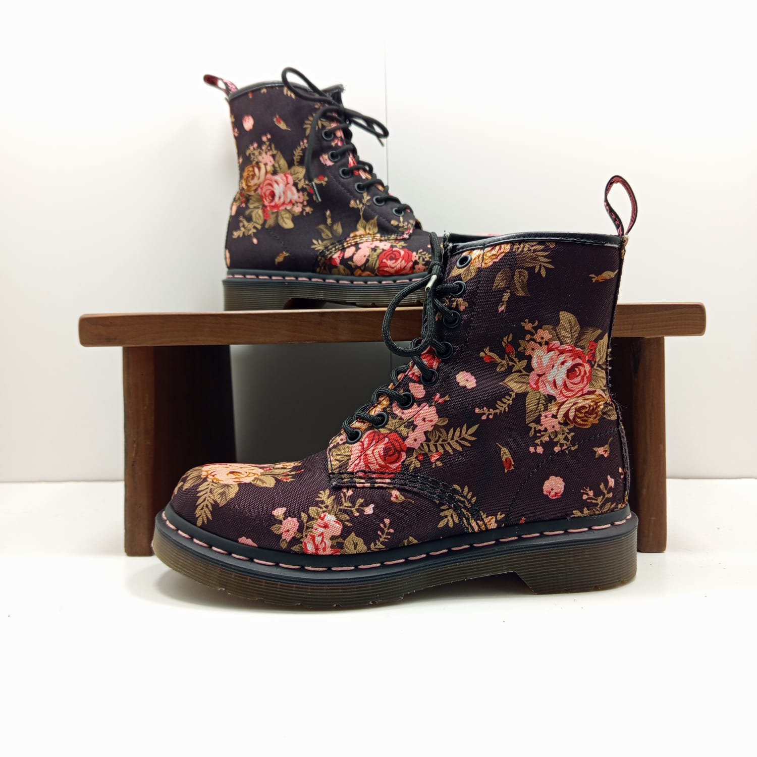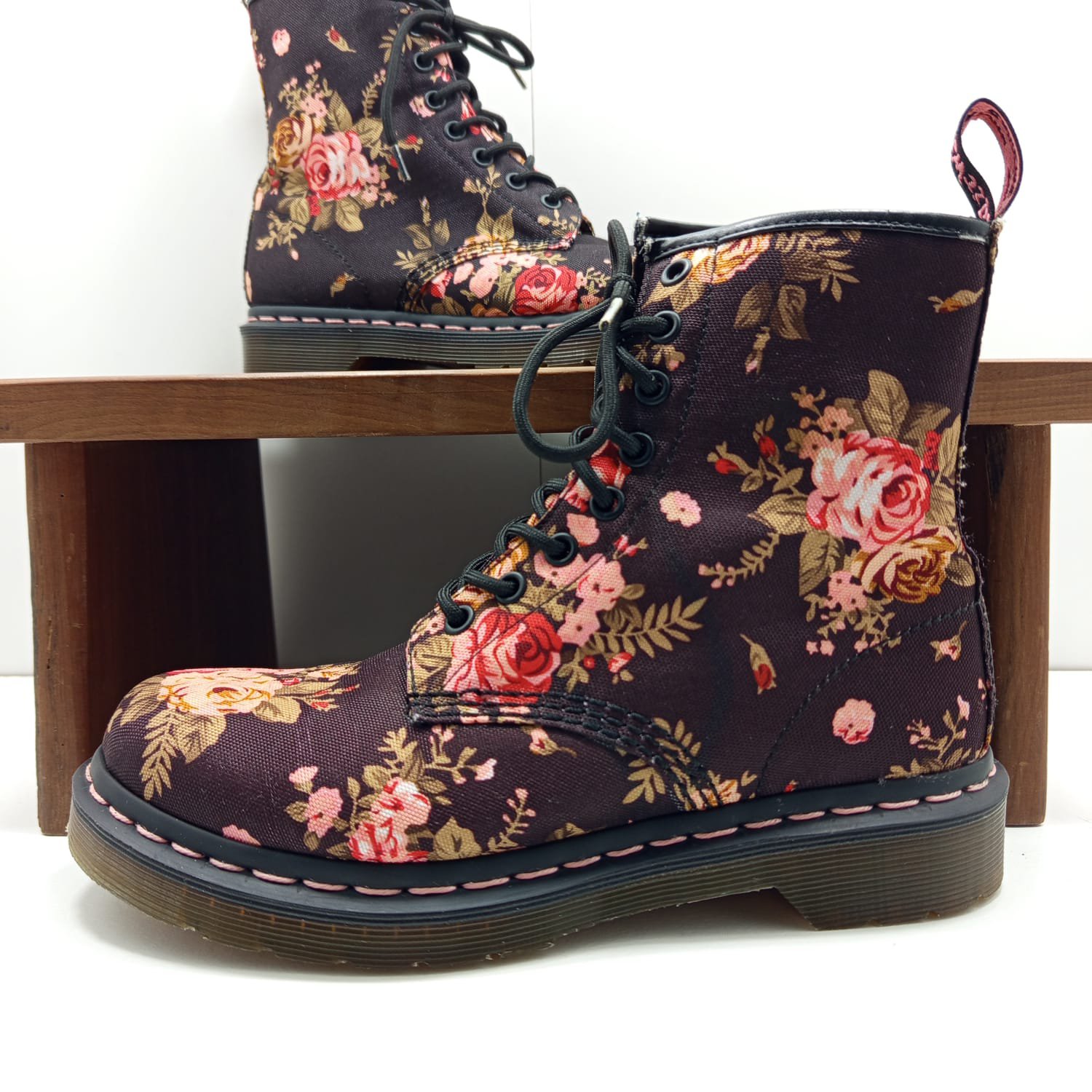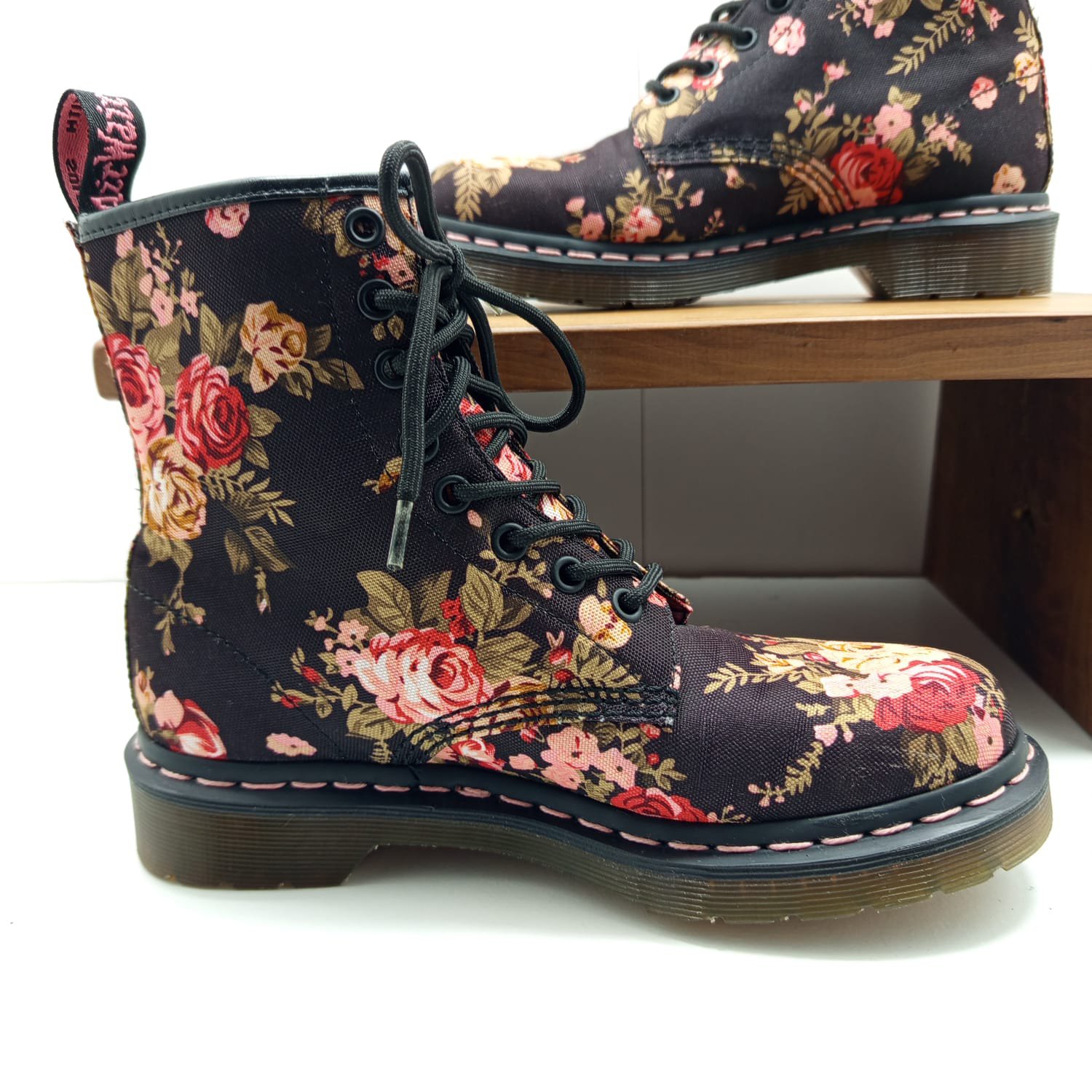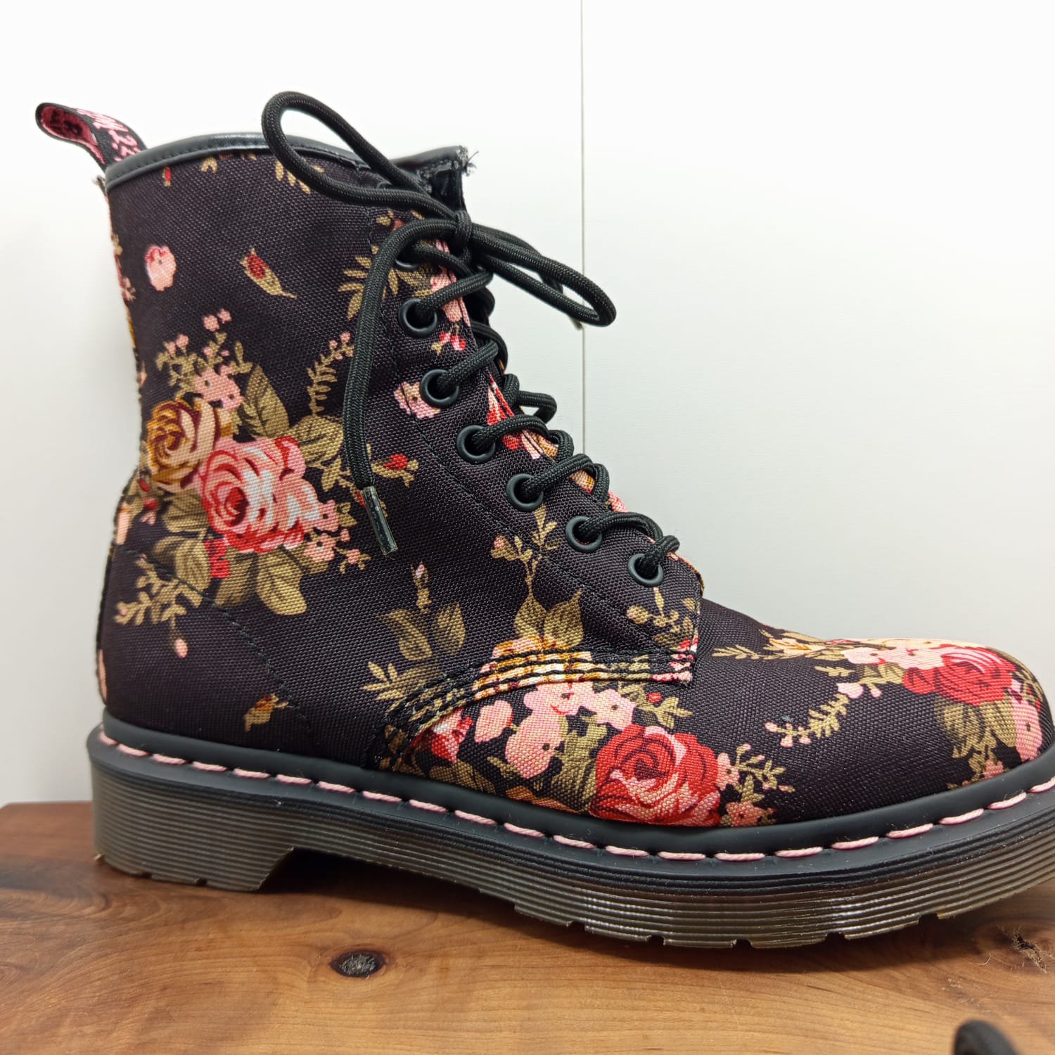 Modèle de Doc Martens avec un imprimé floral, idéal pour les amateurs de chaussures originales.