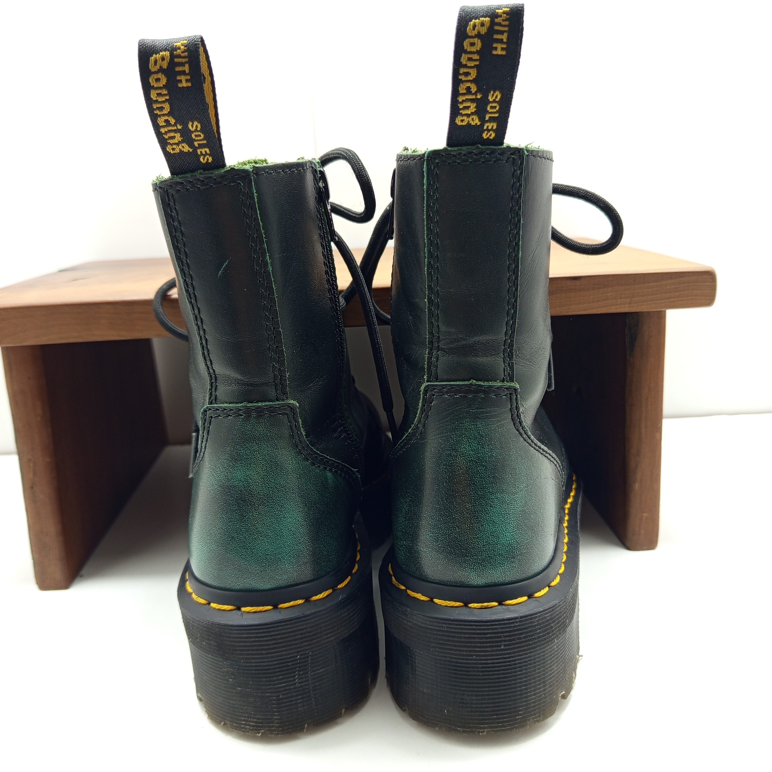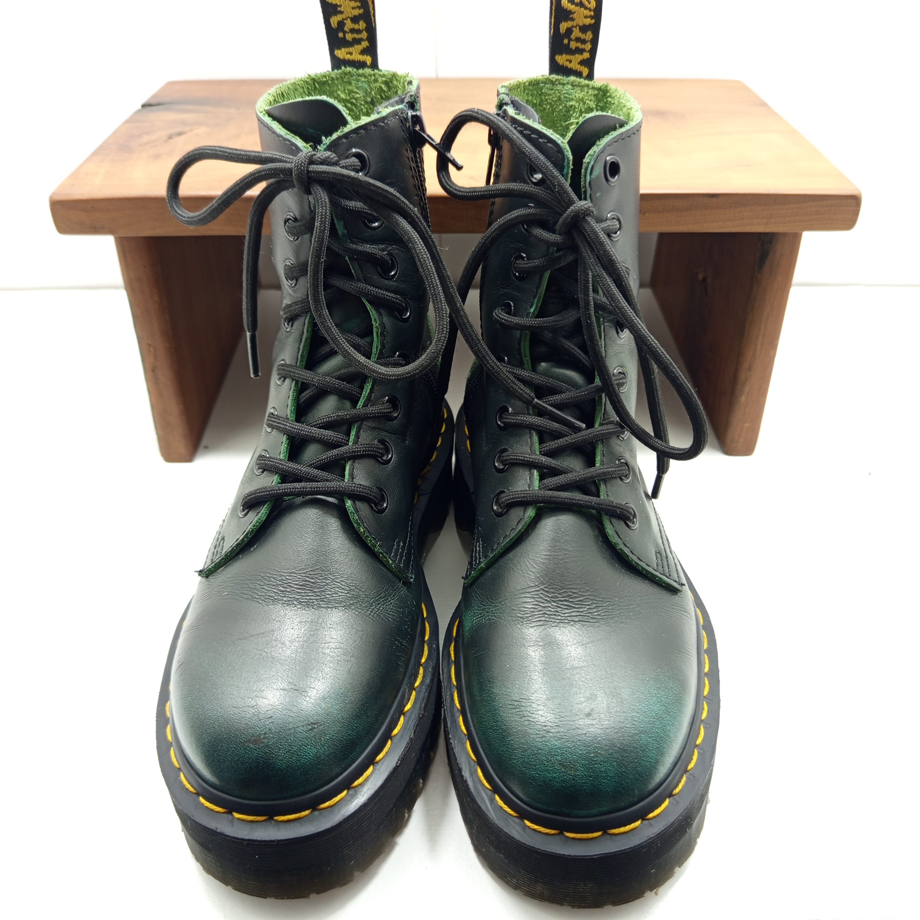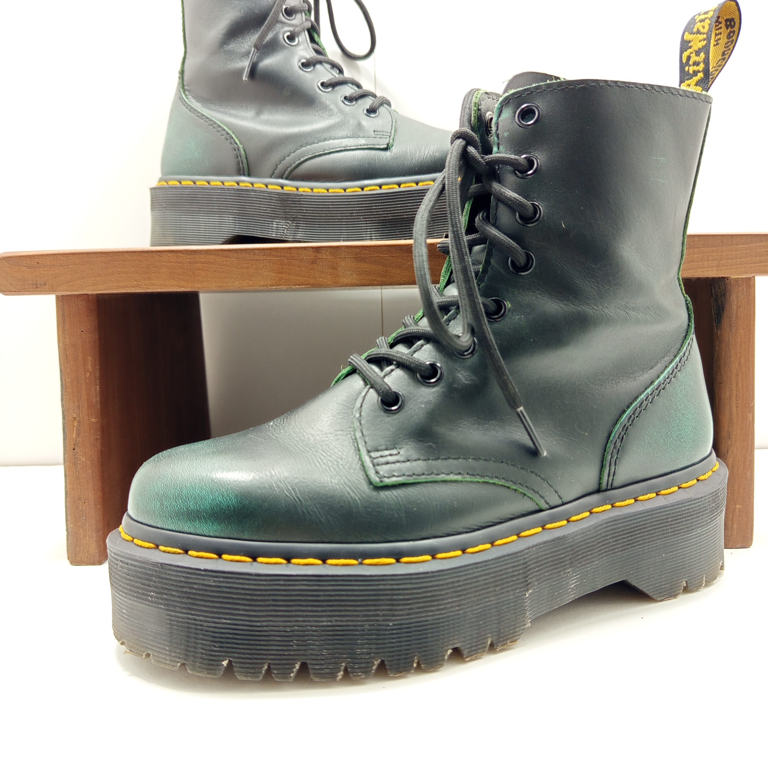 Une jolie paire de doc a semelles plateformes et au cuir patiné.