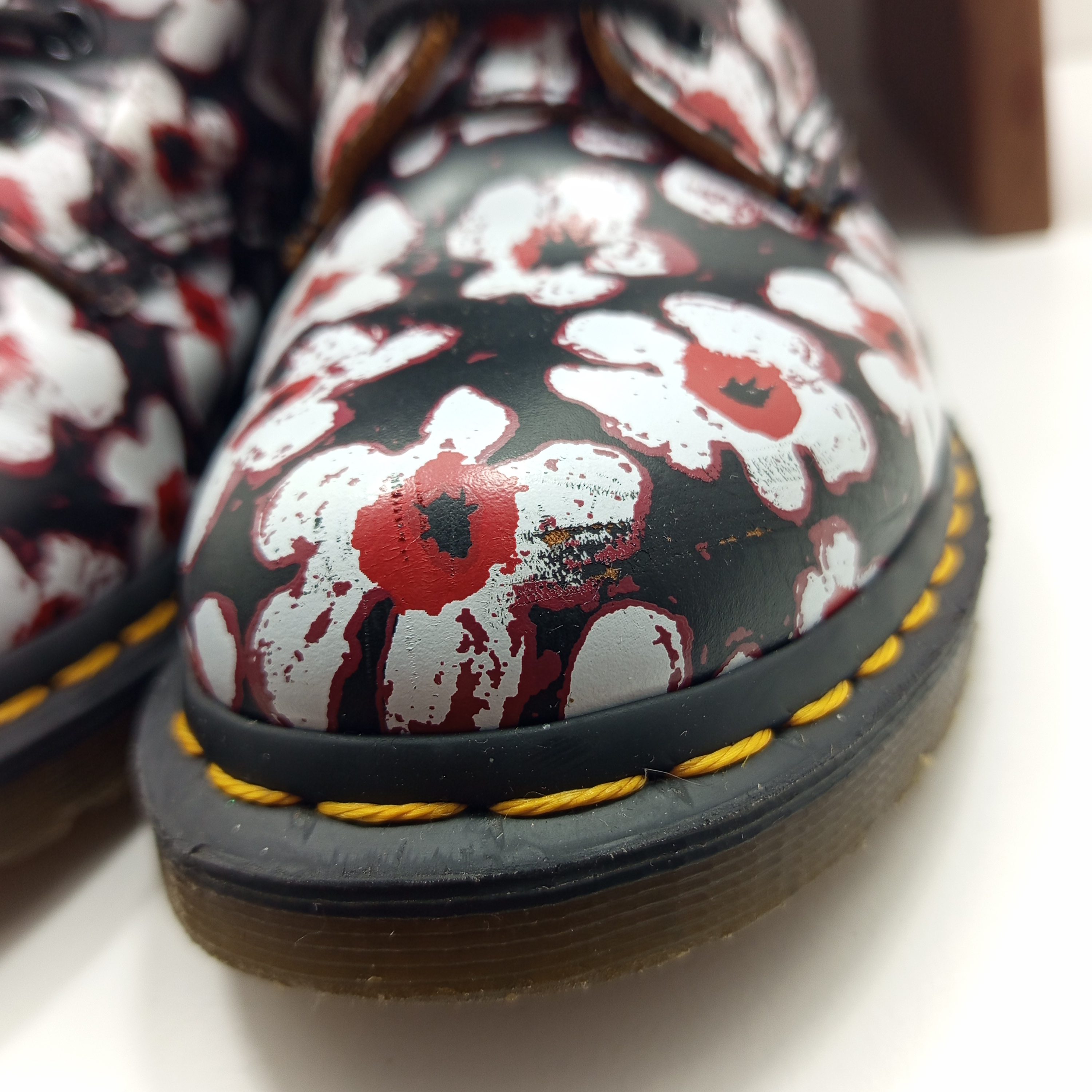 Une paire de chaussures aux motifs floraux très jolis.