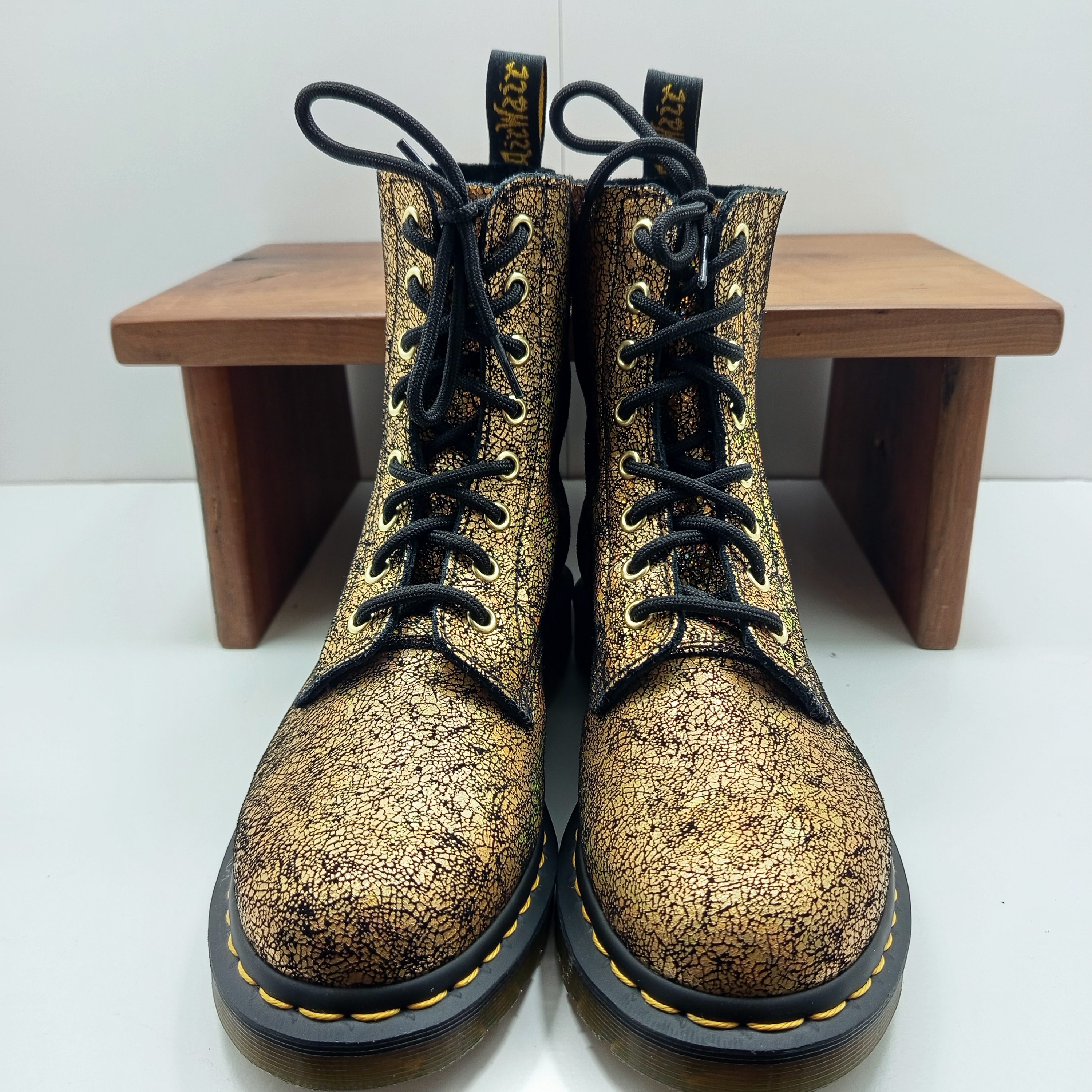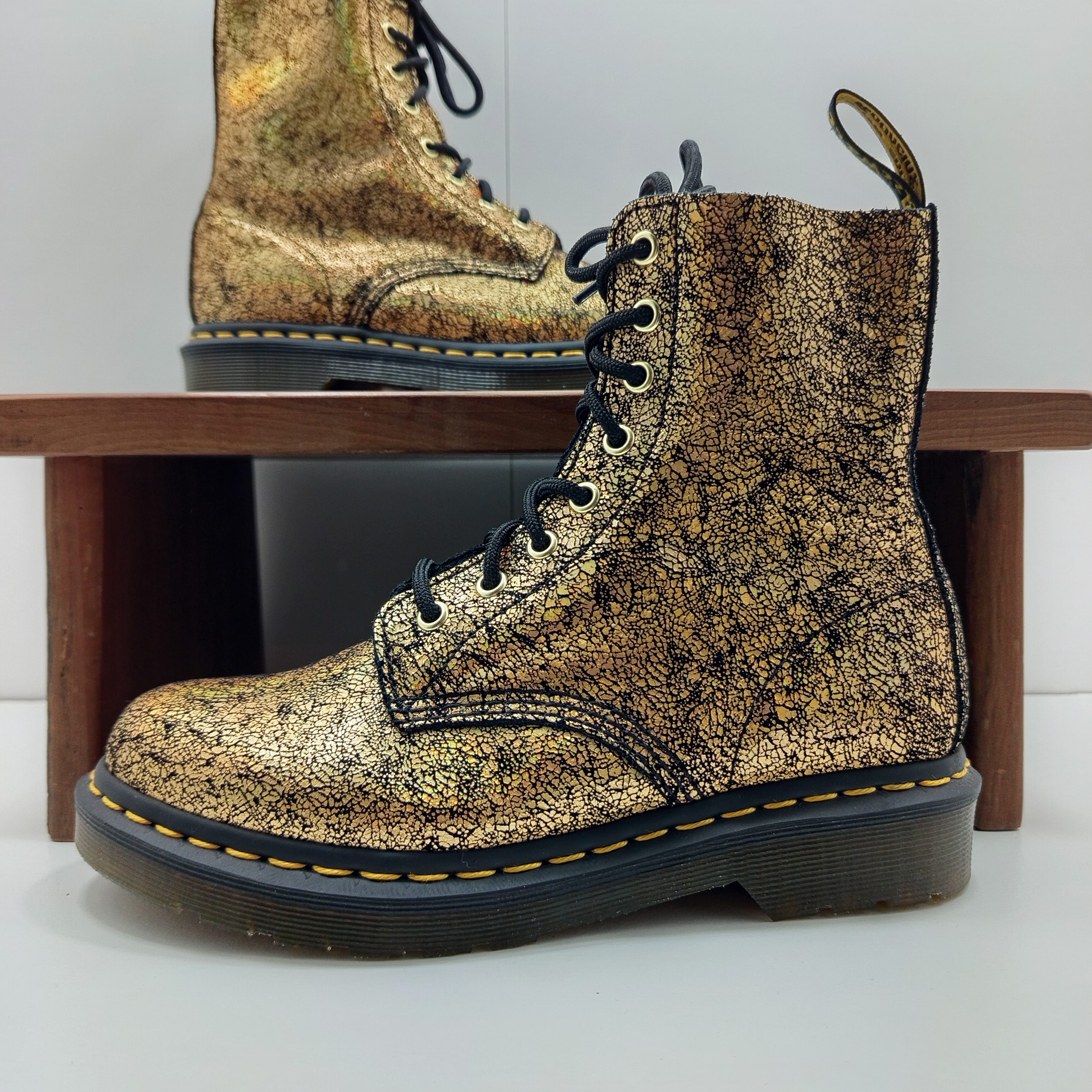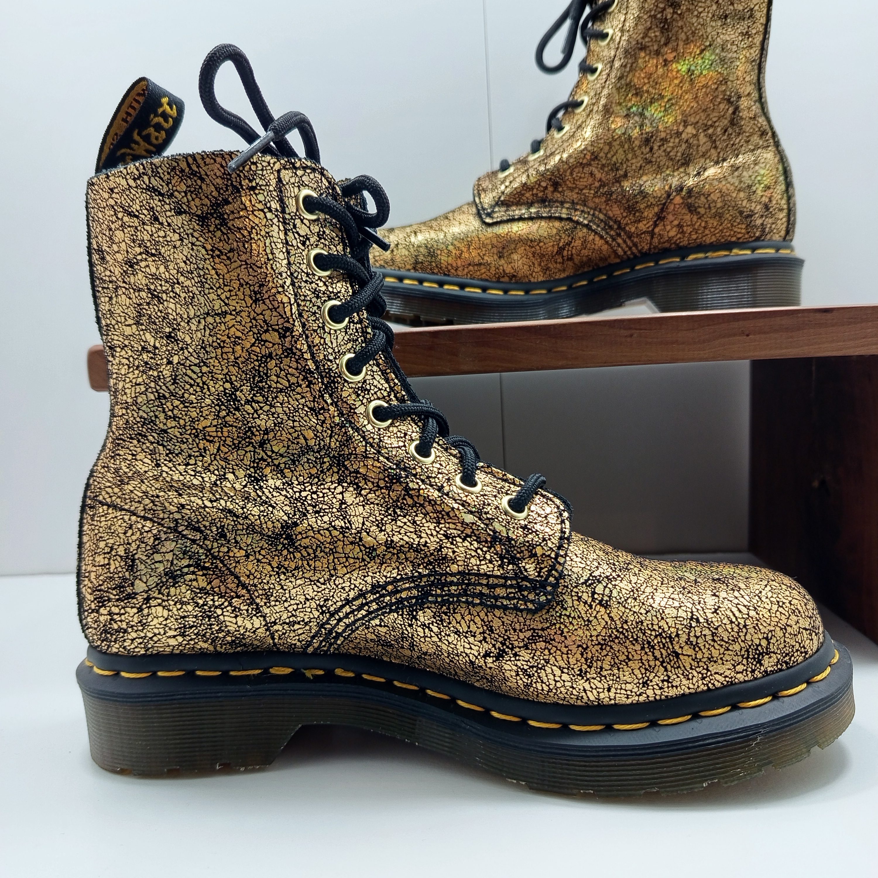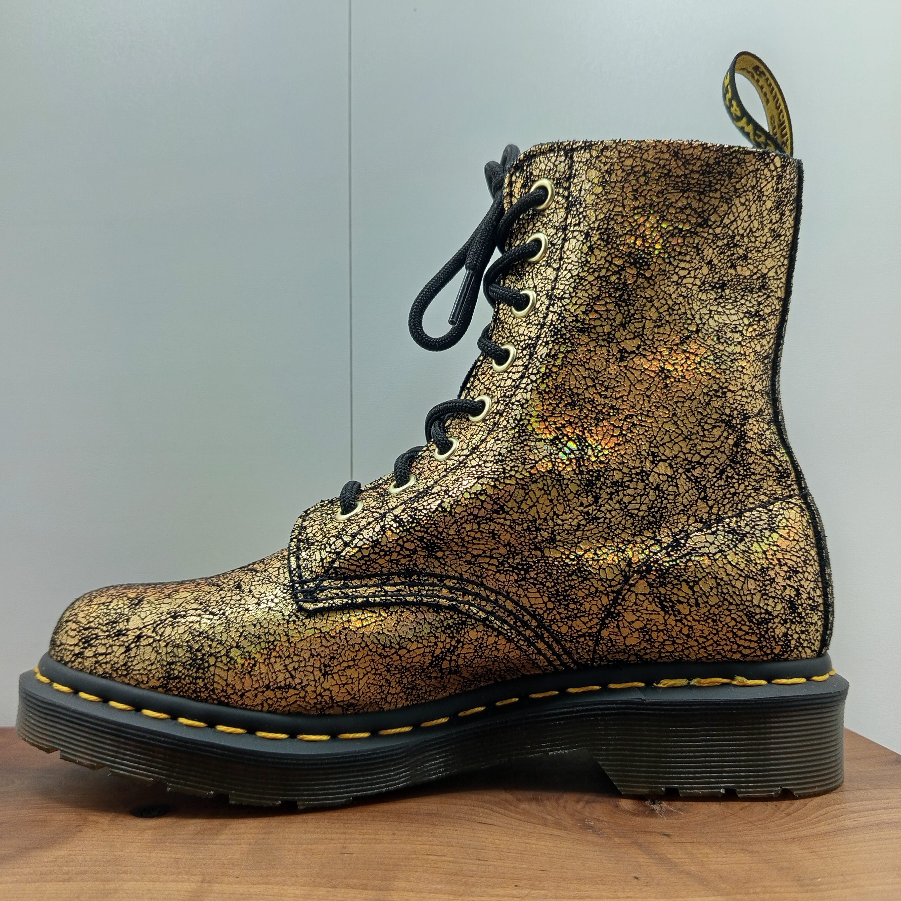 Une jolie paire de doc en cuir souple effet craquelé a reflets.