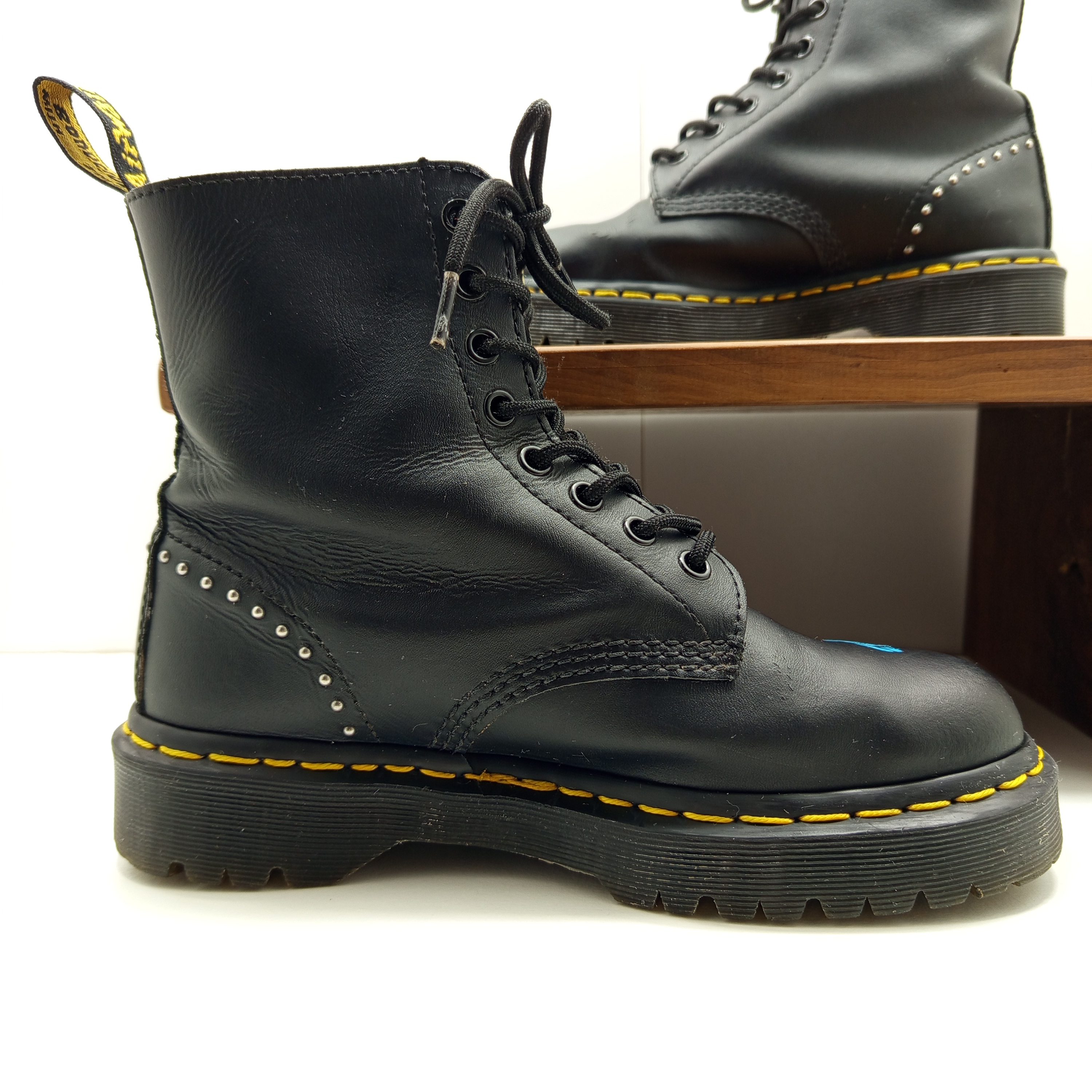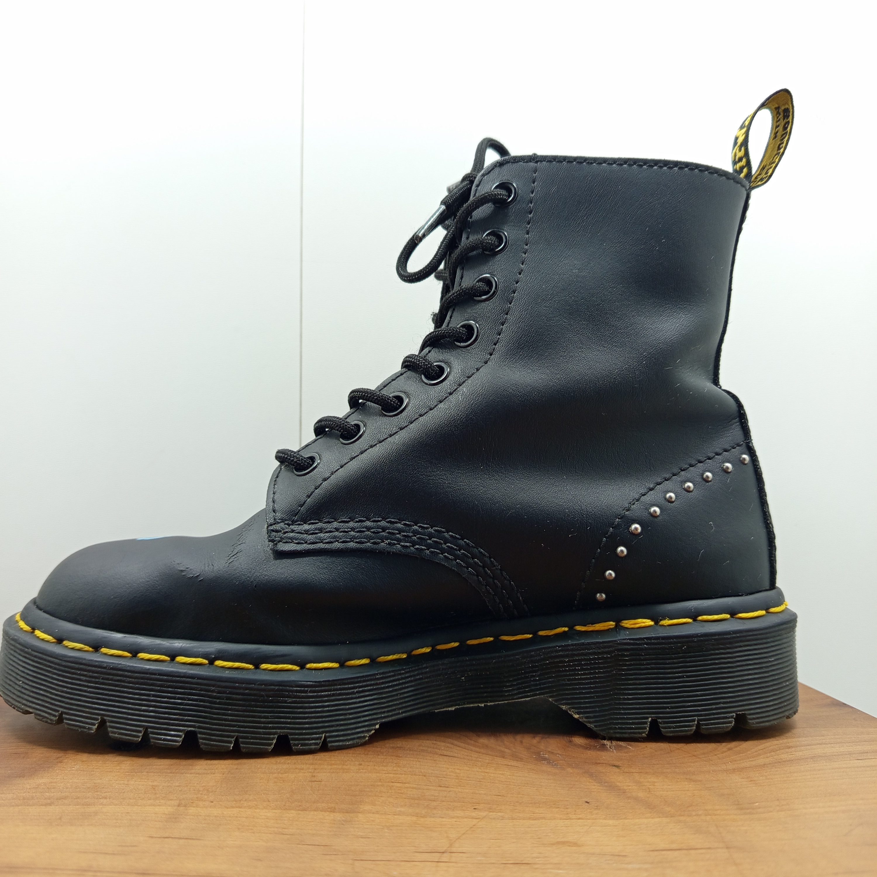 Plis de cuir creusés, plusieurs rayures. intérieur un peu usé au talon.