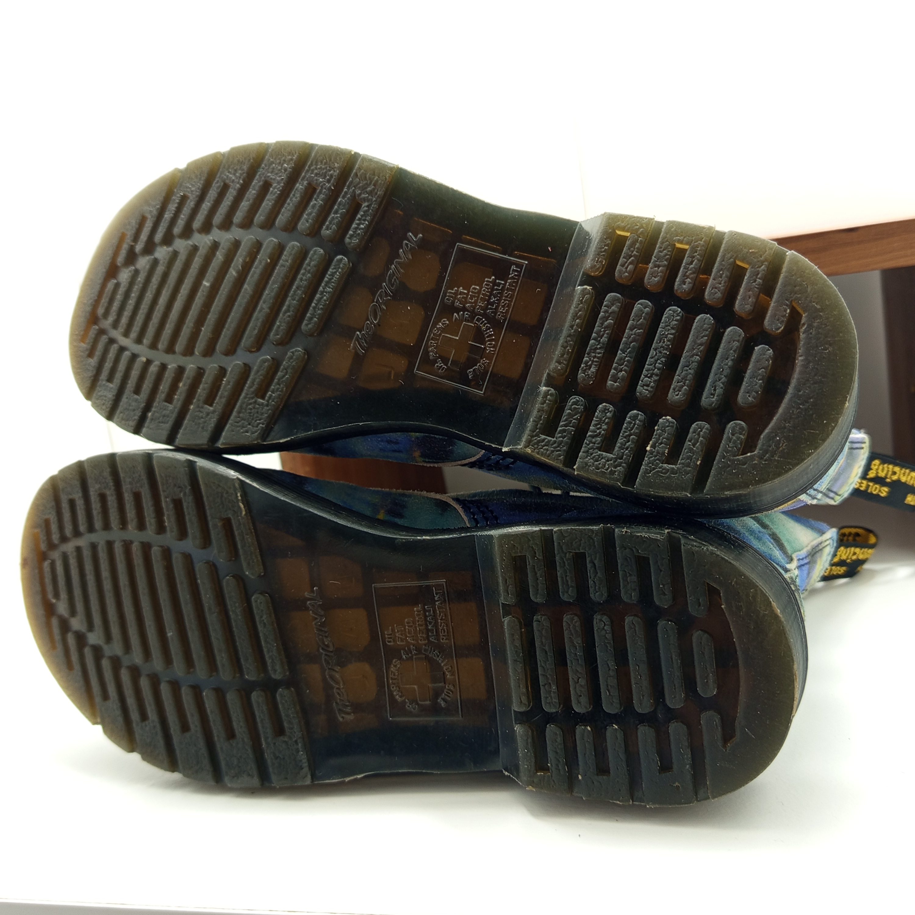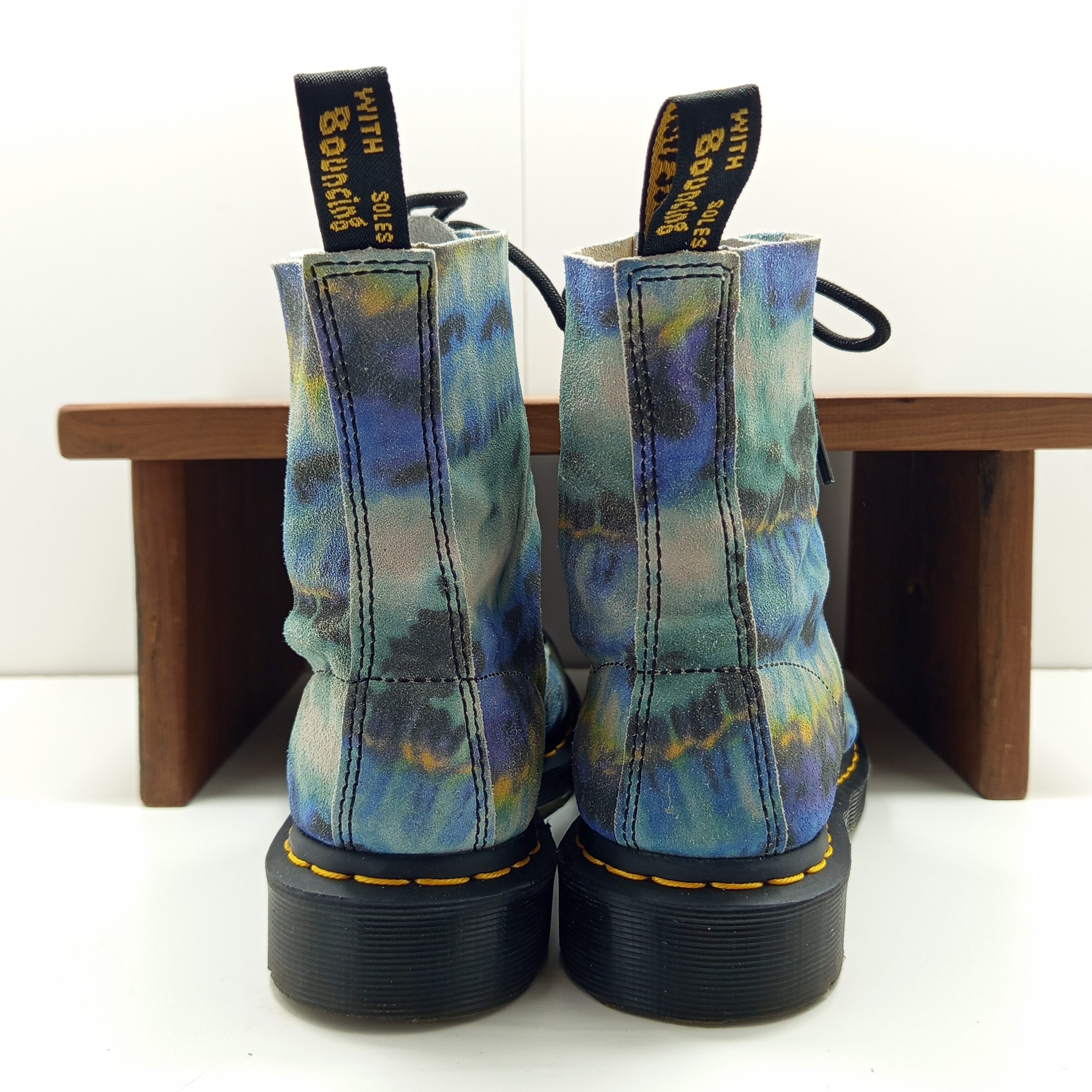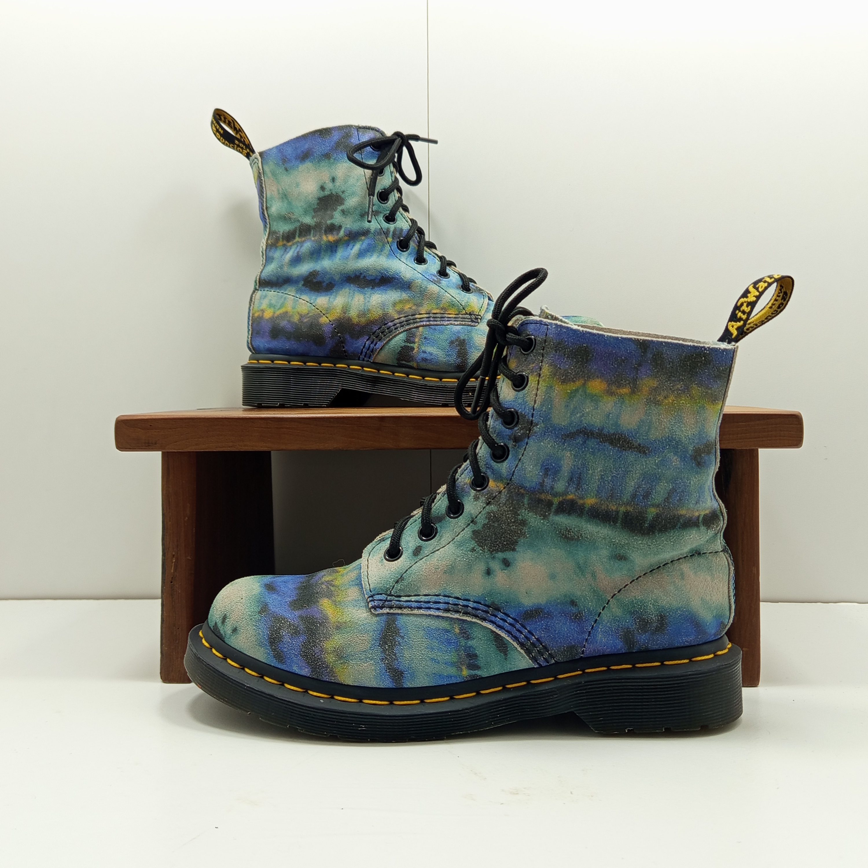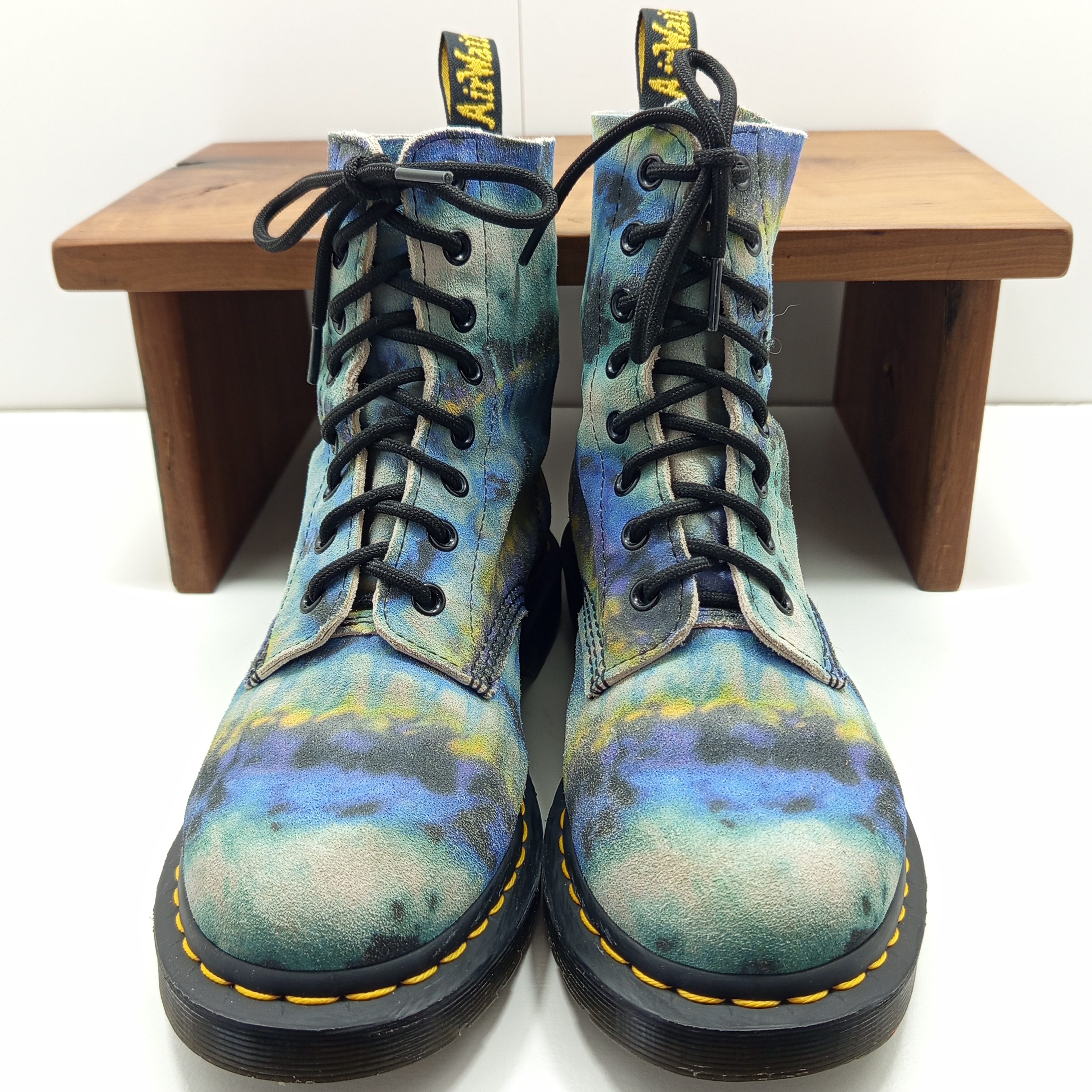 Édition spéciale en cuir souple avec imprimé tie and dye coloré. Modèle 8 œillets iconique, confortable et original.