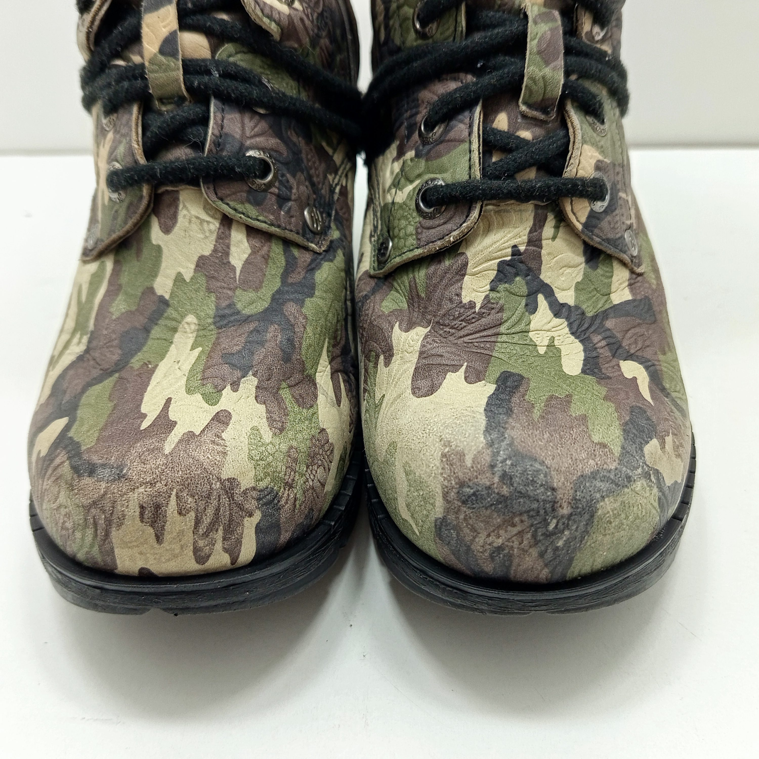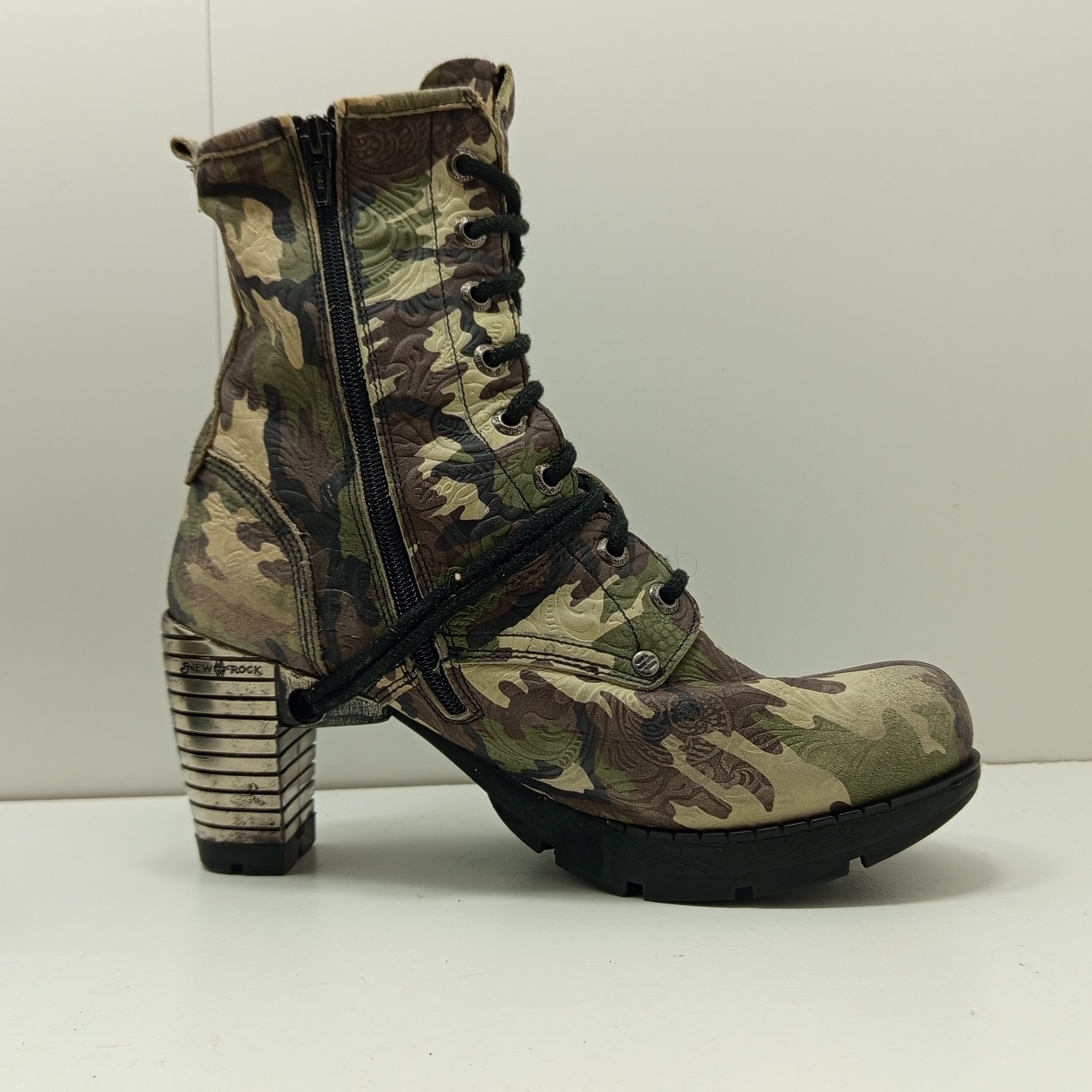 Une jolie paire de bottines a talons imprimé militaire.